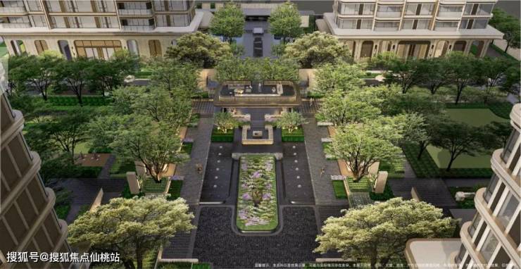 进入小区内,以一条约330米中轴园林,贯通南北双园,打造「三进五院」的归家礼序,中式对称美学处处可见。主入口高约10米、宽约56米,足够恢弘大气,放眼广州,仅此一家!
