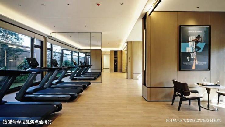 8#运动架空层集聚瑜伽室、跑步机、器械锻炼等多元健身空间。大面积玻璃幕墙,引入自然光,既能酣畅淋漓地运动,又能享受户外景观。