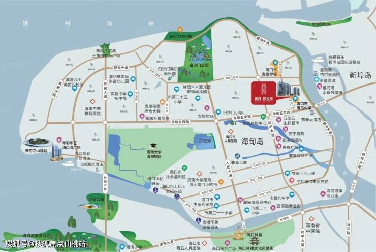 项目西接和平大道,沿世纪大桥连接国贸、世贸等城市商业中心,东临碧海大道,经海新大桥连接新埠岛,直达江东CBD,距离海口东站、汽车站约7.5公里,距离美兰机场约17公里,环岛高速、高铁畅达全岛。