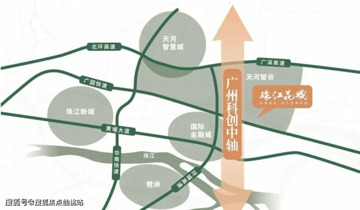 珠江花城占位广州第三科技中轴,毗邻天河智谷。茅岗路一线直达鱼珠CBD,直线距离约6km享珠金琶三大CBD繁华生活。