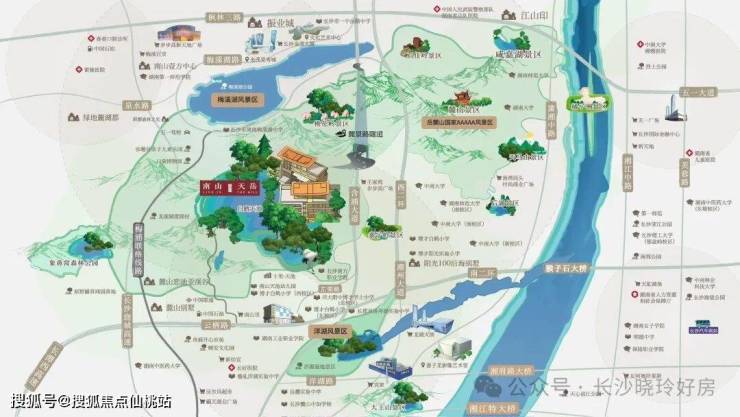 立于岳麓山脉之上 雄踞于梅溪湖与洋湖之间