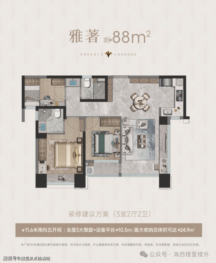 高层产品:88平3房2卫,260套;99平3房2卫,260套