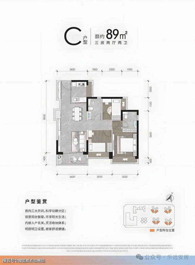 面积:89㎡3房108-117㎡4房2卫