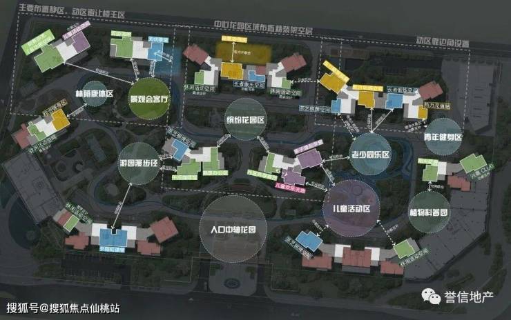 项目自带园林约5万㎡,约等于9个足球场的大小,是整个古镇等级最高端、规划最完整、功能最丰富的的私家景观园林体系,以小区主入口为起点形成纵向景观主轴,分别以西侧楼王景观区和东侧儿童活动区为核心构建的“双线+中轴”景观带。