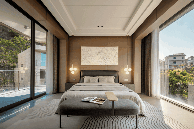 精研意大利进口家私,主卧套房以独立卫浴、衣帽间及半山露台定义奢适尺度。