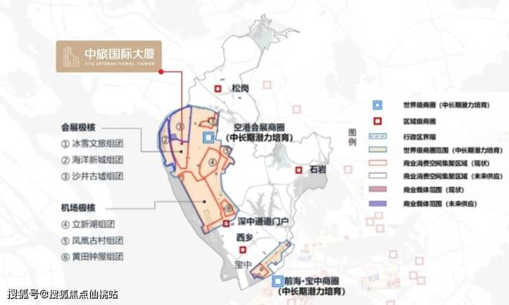 《深圳市总部经济集聚区布局规划》正式对外公布,布局了40个总部经济集聚区,总规划面积约94.08平方公里。其中6个总部经济集聚区布局宝安,涵盖会展海洋新城总部经济集聚、前海湾现代服务业总部经济集聚区;其中项目位于海洋经济及滨海文旅类的会展海洋新城总部经济集聚区核芯位置。