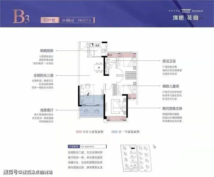 2. 板式全明阳光三居,南向舒阔阳台,风光四季尽览