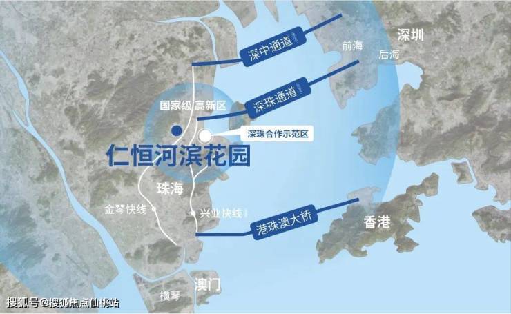 仁恒·河濱花園選址粵港澳大灣區珠江核心城市區域——珠海唐家灣高新區,這裏不僅是國際級高新區,同時也是深珠通道落腳點第一站,深珠合作示範區距也此僅2公里。