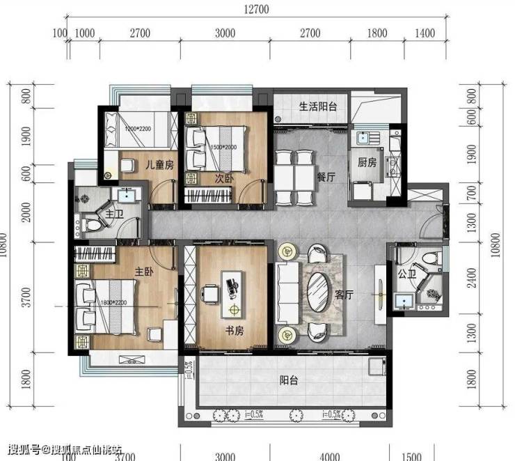 南北双阳台,与客厅、餐厅连通,清风相伴,阳光流连;