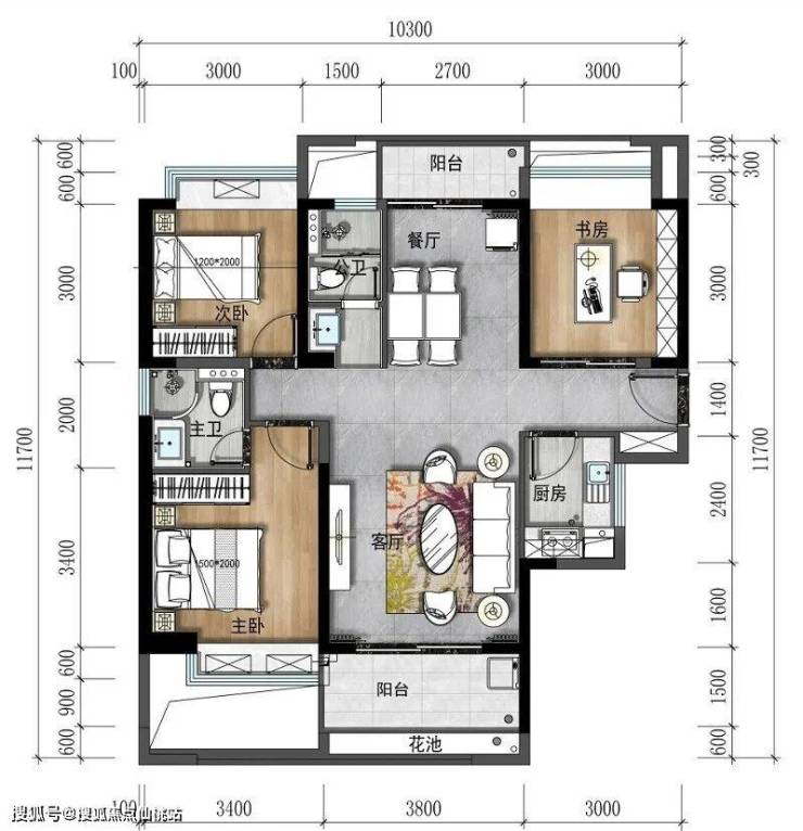 A2户型:105㎡ 阳光三房