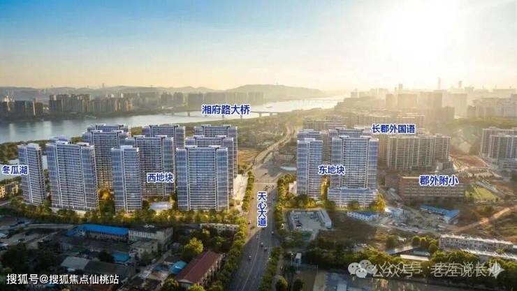 本项目有2块地,以天心大道为界限,东侧地块面积小一些,但是上学更近,不用过大马路,更安全;西地块面积更大一些,楼栋布局及园林的空间更大,但是上学略远,东侧临天心大道,西侧临近京广铁路,不利因素明显。