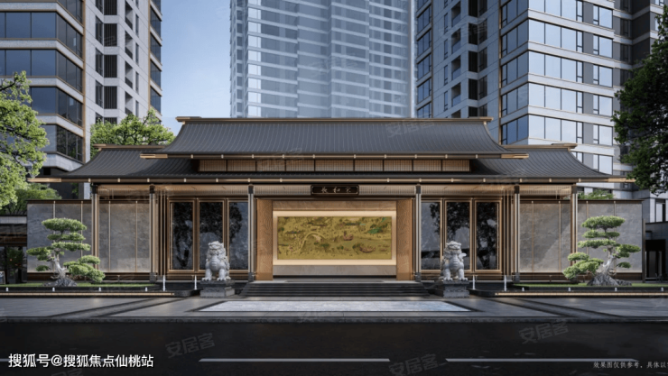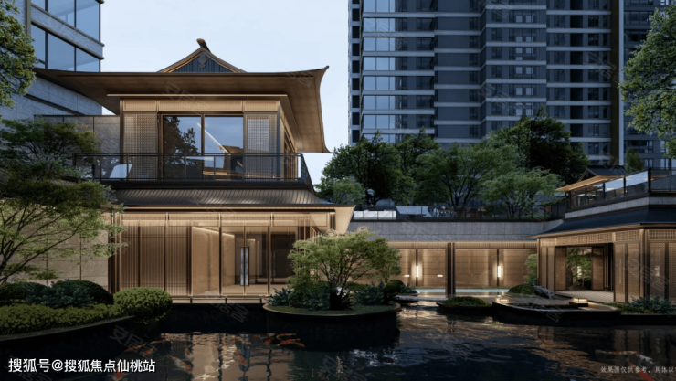 外立面采用公建化设计风格,金属线条+大面积玻璃窗,契合现代人居审美,提炼传统建筑的“飞檐”意象,创新演绎为东方重檐造型,舒展如翼,轻盈而不失稳重。