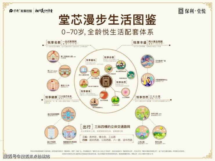 保利堂悦1.5公里漫步生活圈,涵盖了优质教育资源、繁华消费商圈、权威医疗体系以及城市生态公园。三纵四横的便捷交通脉络,让每一次出行都能够从容地走在时间的前端。