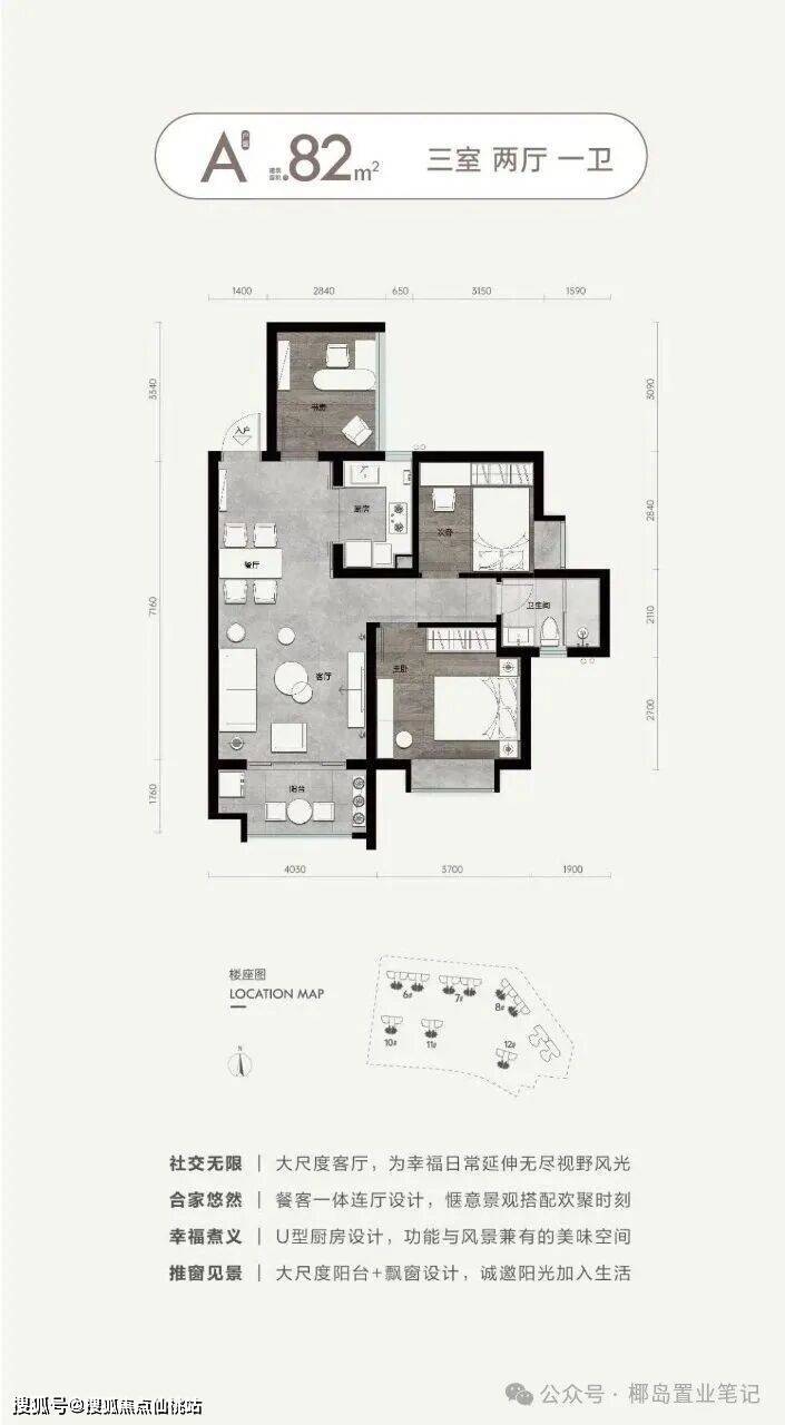 9.【三亚绝版 极致稀缺】82㎡三房,99㎡四房,超高得房率,270度观景面,观山阅景,尽显从容。二梯四户,纯板式通透式设计,户型方正,全屋品牌精装,尽享三亚生活。