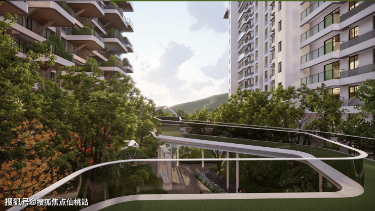 采用第四代创新型住宅建筑体系,保利和光·尘樾最大的亮点是“空中花园阳台”,花园增加乔木约5600棵,增加绿化面积约26000㎡,通过错位,结合阳台一体化设计,实现“层层有森林,户户有庭院”的沉浸式垂直式森林全景社区。