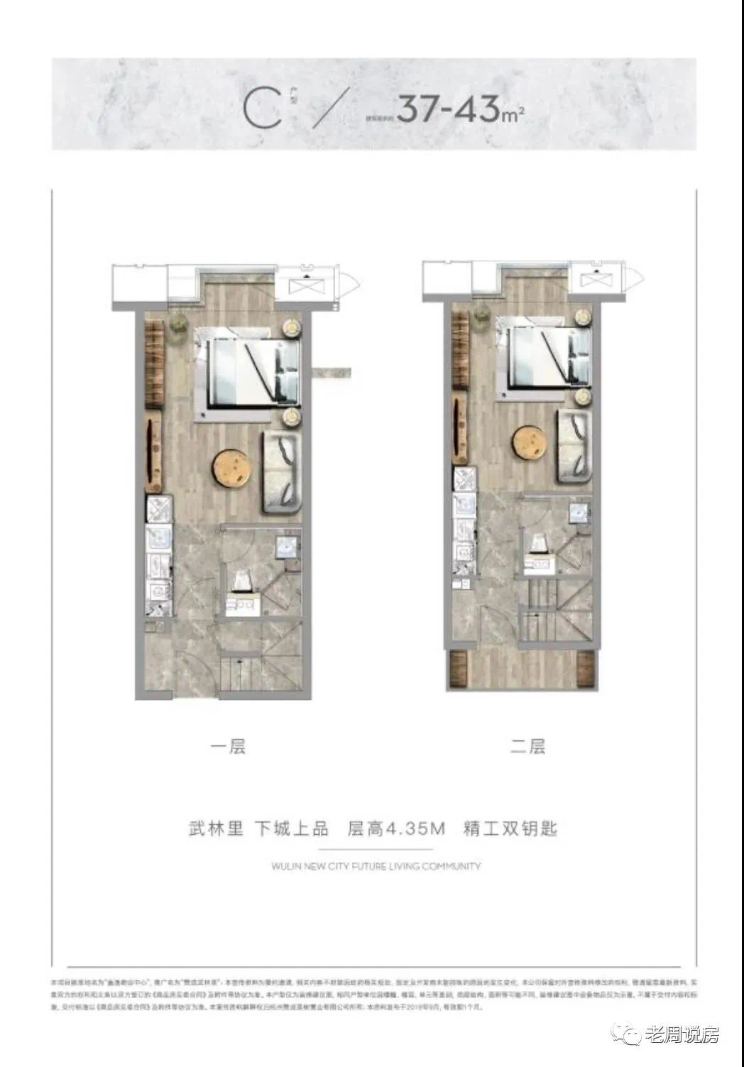 武林里主打约37-43㎡精装“双钥匙”和LOFT,全是市面上的明星户型。作为近两年新兴的“网红”产品,双钥匙就像是畅销代名词。一本产证、两份租金,坪效较大化。近两年一经推出,就飞速蹿红。