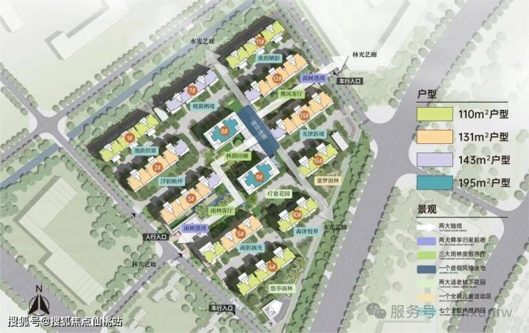 ✨亮点:围合式布局,打造南北通透,户户观景,以中轴水系延伸景观设置泛会所入户大堂。游园式归家,双动线,保证南北两个组团独立,整体增强私密性,减少居住干扰。