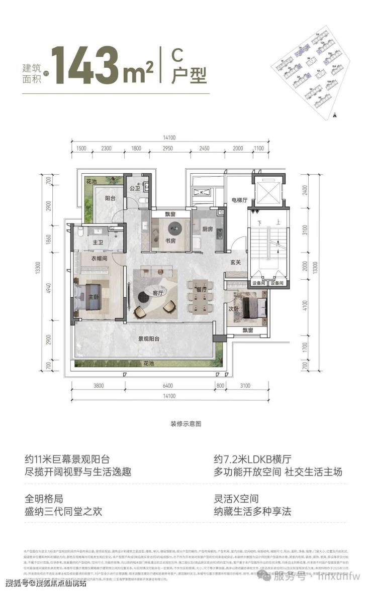 【面积区间】建筑面积约110㎡、131㎡、143㎡、195㎡