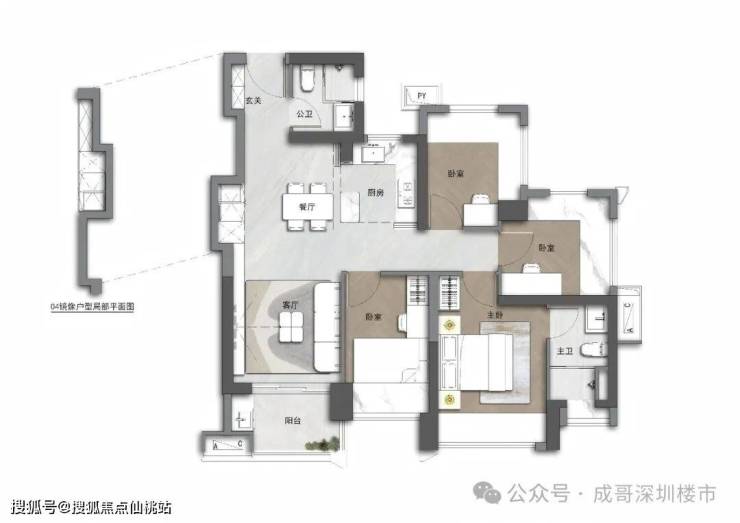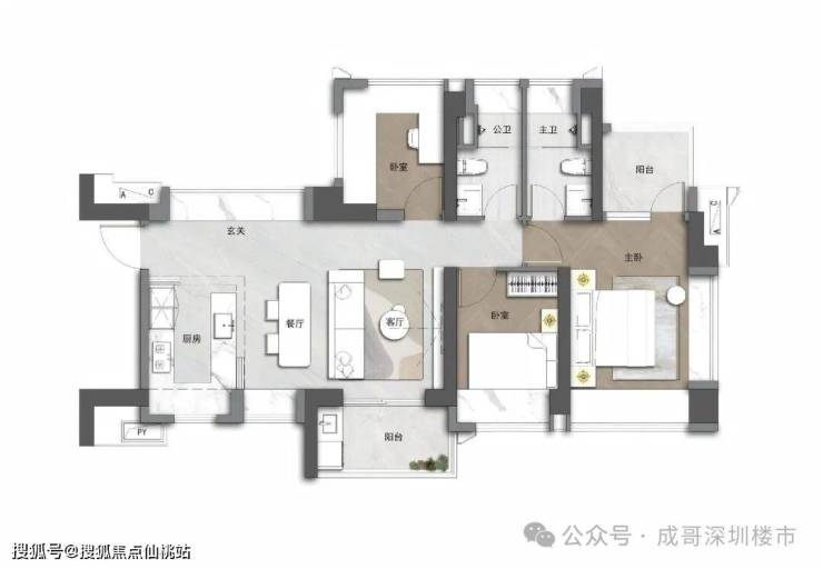 稀缺小户型三房格局,LDKB一体化设计,入户玄关模块,满配功能组合,市场罕见质价比之王。