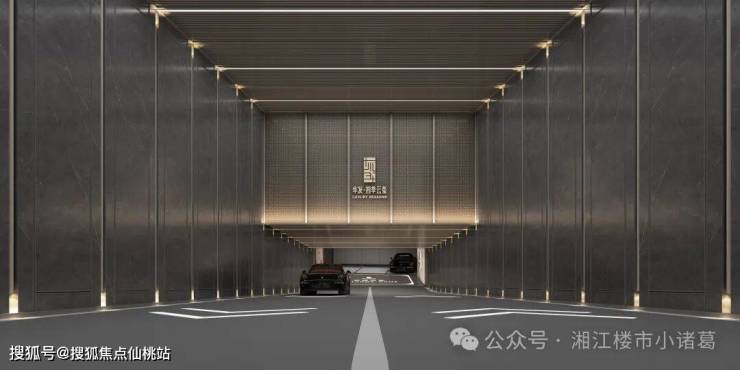 将五星级酒店同款星空顶搬到车库空间,让业主进出门的时候就体验尊崇高贵;坡道采用铝板+格栅造型吊顶,整体简洁大气,同时以香槟色暖色灯光结合,营造展厅级的体验。