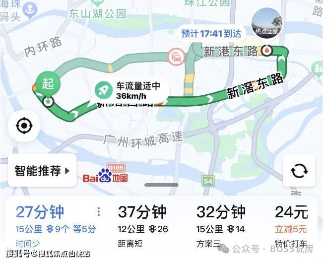 接下来看看自驾到琶洲,珠江新城和纪念堂需要多久时间