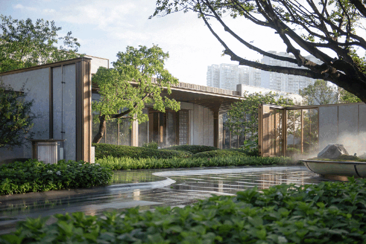 另外充分考量海珠西老城区的独特韵味,因地制宜,巧妙地将新中式元素与老城区的在地文化相融合,使得整个项目既展现出中式美学的独特魅力,又不失现代生活的便捷与舒适。