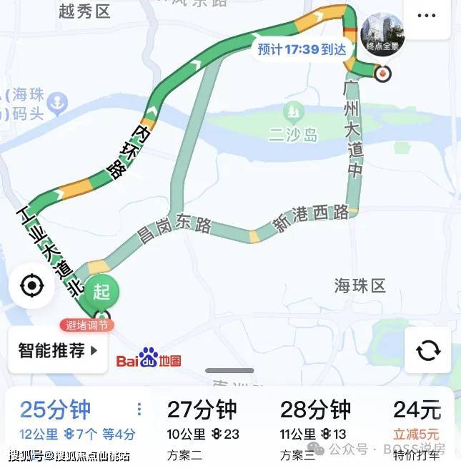 自驾到珠江新城,走工业大道转内环,7个红绿灯,大概25分钟左右;