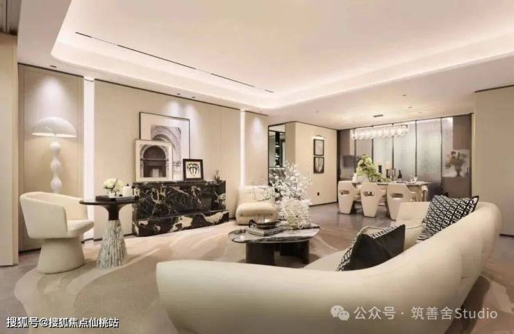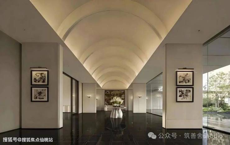 室内空间设计以现代笔法,将坊巷的礼序、茉莉的温润、海洋的开放与建筑的光影巧妙融合,注入这片土地,精心营造一个现代典雅的国际住区。南洋回廊的拱门元素,在中寰悦府的设计中被巧妙运用,成为贯穿空间的精神主轴。在接待大堂,高挑的空间与对称的拱形序列相得益彰,共同营造出恢弘典雅的场域气度,让归家的第一眼便充满仪式感与尊贵感。设计的匠心体现在细节的精雕细琢上,柔和的弧形切角与精工匠造的凹凸比例造型,在光影的映衬下,形成丰富细腻的视觉层次。这不仅是对南洋建筑优美弧线的致敬,更是以现代工艺还原那份慵懒、温润的生活意境。
