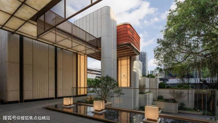 示范区以“回型动线”展开叙事:外圈是连贯的展示与归家路径,内圈则围合出层层退台的庭院。塔楼底部的架空空间也被纳入这一系统,让人可以在不同高度间穿行、驻足、回望。行走其中,建筑、庭院与景观渐渐融为一个可漫步、可回游的生活场景。