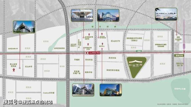 4大核心商业:红山6979(直距约500米)、龙华天虹购物中心(直距约1.5公里)、华润万象系商业(直距约1.8公里)、华南地区首家的COSTCO(直距约2公里)
