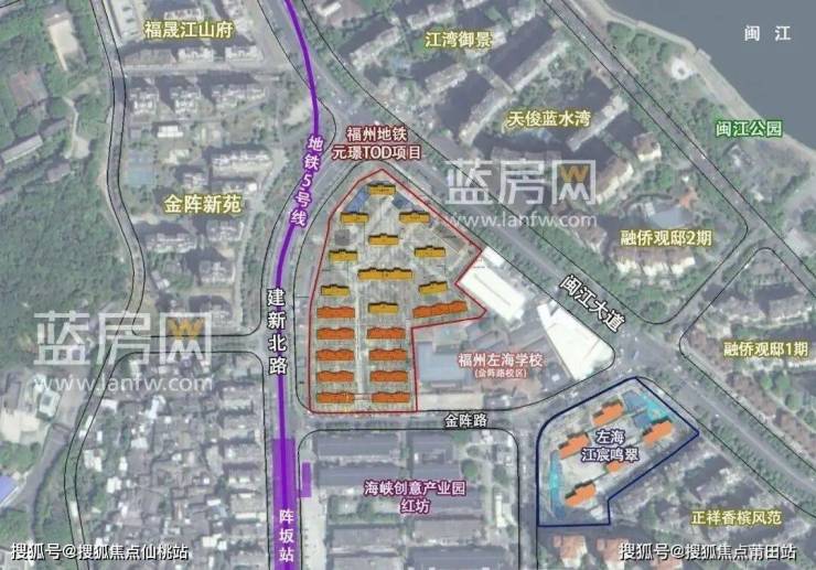 福州元璟TOD项目位于仓山区建新北路与闽江大道交叉口南侧,周边配套情况如下: