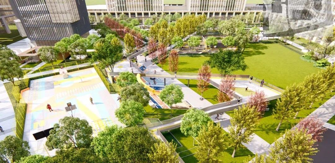 运河印自带约2万方中央“都会绿洲”,阳光草坪、艺术花园、极限运动滑板场、篮球场、空中栈道、主题互动空间等个性化景观空间规划,实现人与人、人与自然的无界社交。