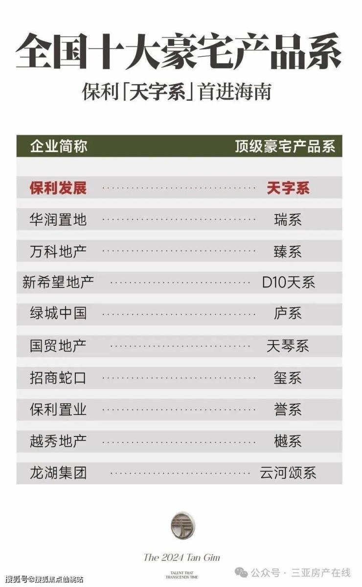 天字系,以客户需求为圆心,根据城市基座,提出“甄选城芯、产品打造、服务配置”三个方面的严苛要求,因而成为保利顶级豪宅产品系。且是全国十大豪宅产品系中首位进入海南的。