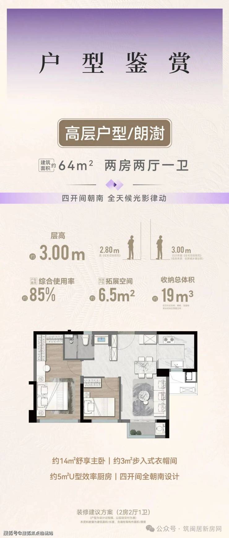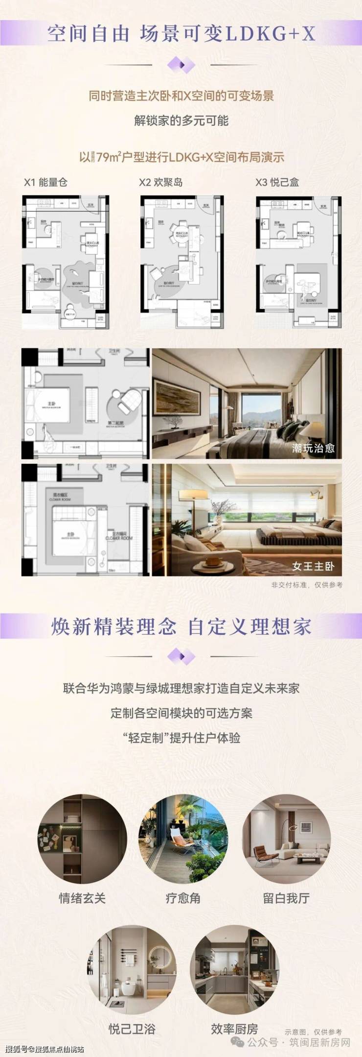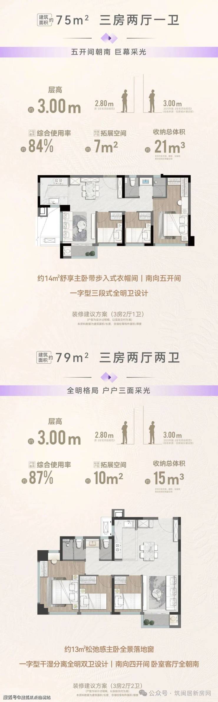 项目规划4栋瞰海高层(部分)2梯5户,64㎡2房、75㎡3房、79㎡3房、89㎡4房,(得房率85%—90%)层高3米;5栋低密洋房,95㎡和112㎡4房,得房率97%—98%)层高3.1米,类独梯独户设计,户户都有一个12-13㎡的入户电梯厅。高层和洋房全系均有外阳台。