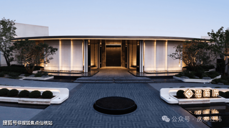 “招商序” 以 45° 斜轴设计串联社区空间,引入 “序系” 花园商业,打造超 120 米的震撼城市展示面。约 53 米长的弧形巨幅石材景墙,采用贝金米黄石材铺贴,搭配定制灯光系统,无论白昼黑夜,都能呈现艺术馆级别的视觉效果 —— 这不仅是服务业主的社区界面,更是献给长沙的城市建筑艺术名片。