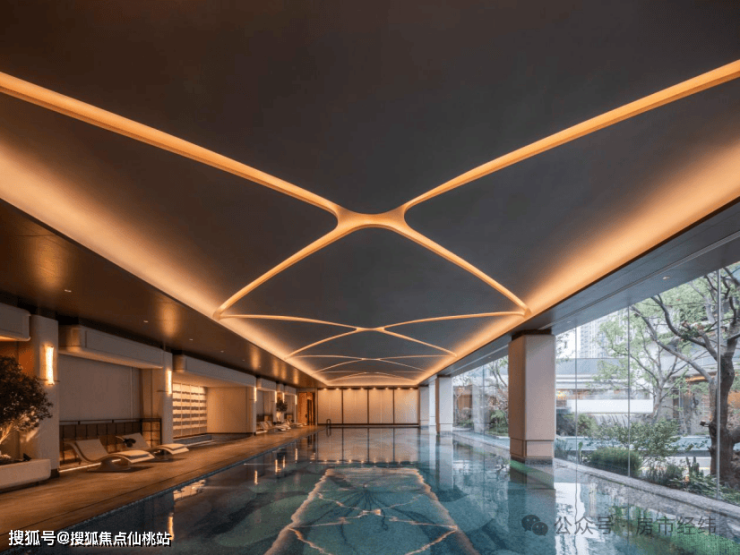 社区规划上,“招商序” 突破传统模式,利用地势高差整体抬高 10 米,构建出 “浮岛社区” 的独特格局,赋予居者更广阔的视野。作为长沙首创的约 1800㎡中央立体庭院,以中国传统山水画为设计灵感,让台阶、坡道与植被自然融合,营造出诗意栖居氛围。庭院中央,户外悬浮泳池与室内恒温泳池相连通,实现长沙首个 “三泳池联动” 社区配置,让居者在亲近自然的同时,享受多元休闲体验。