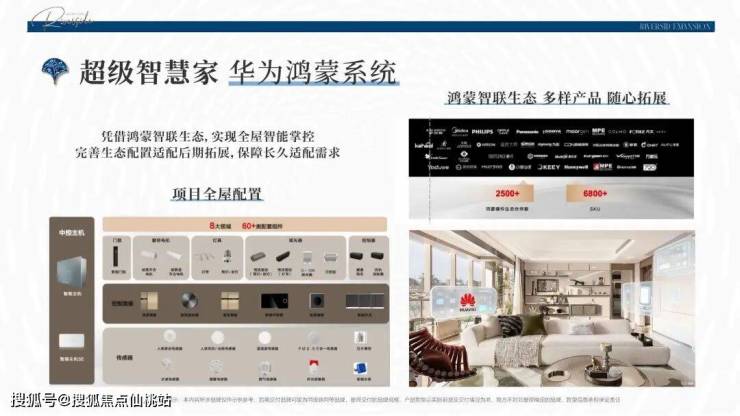 比如说,采用顶豪同款华为鸿蒙系统,智联生态实现全屋智能掌控,并通过完善生态配置适配后期拓展,构建全场景智能家居模式。
