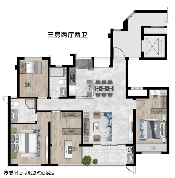 双卧套间,三卫,对于这个面积段来说,有这两样还是挺难得的。