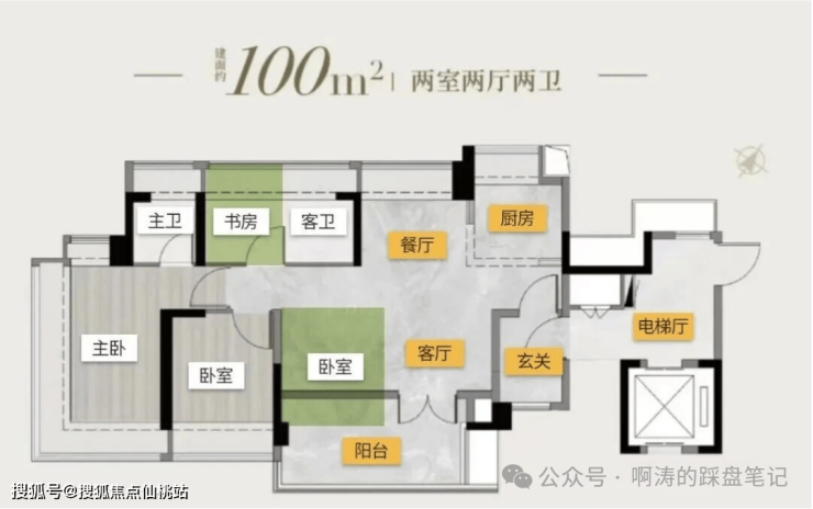 塔楼2T4设计,高25层,主推建面90、100平户型;