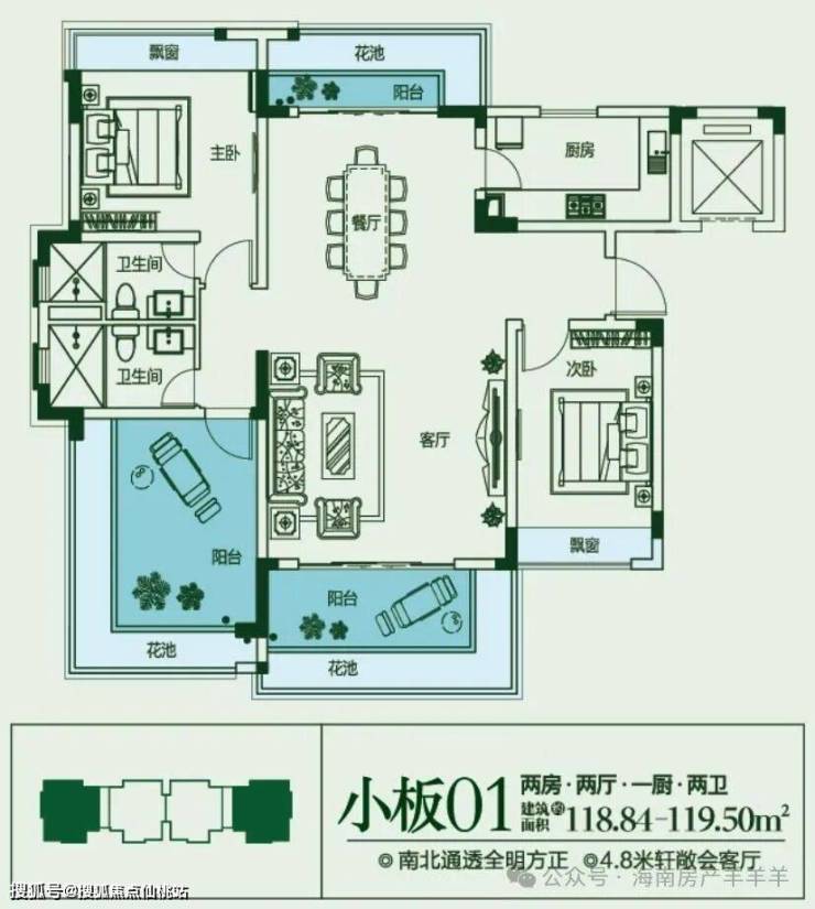 建面约118㎡,2房2厅1厨2卫