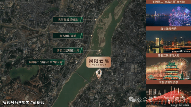 该项目江景够顶!江景豪宅也分三六九等,朝阳云启可以说真正一线亲江,与江滩公园仅一路之隔,举步就能抵达约 135 万㎡的滨江景观带(相当于 200 个标准足球场),推窗就能看到南昌之星摩天轮、红谷滩灯光秀、江景烟花大秀和世界级音乐喷泉,有地标级夜景的加持,晚上的景观比白天更震撼。