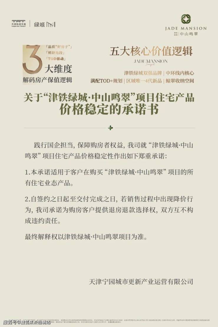 在市场充满不确定的当下,什么才是购房者最核心的诉求?是一份穿越周期的信心,也是一份可触可感的安心。津铁绿城·中山鸣翠直面这一需求,以实力与魄力推出“无忧保价承诺”,成为“河北区惟一承诺保价协议的项目”。