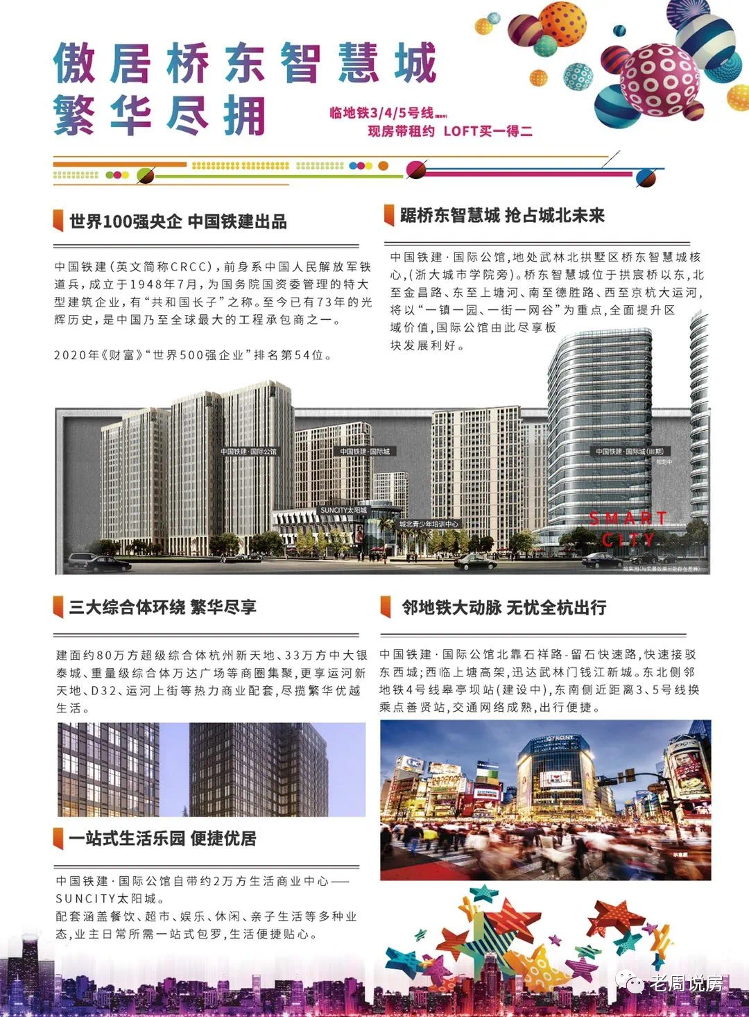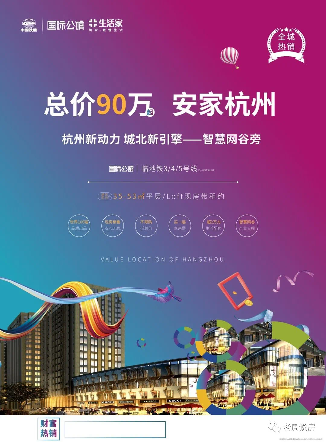 概括:中国铁建·国际公馆坐落于杭州主城石祥路与隽逸路交汇处,周边云集浙江大学城市学院、杭州新天地、城北体育公园等城市醇熟生活配套,为城市新贵营造一个诗意化的城市生活。坐拥城市繁华,匹配尊贵生活,智慧网谷门户,建面约57-75㎡精装LOFT公馆,全城热售中!