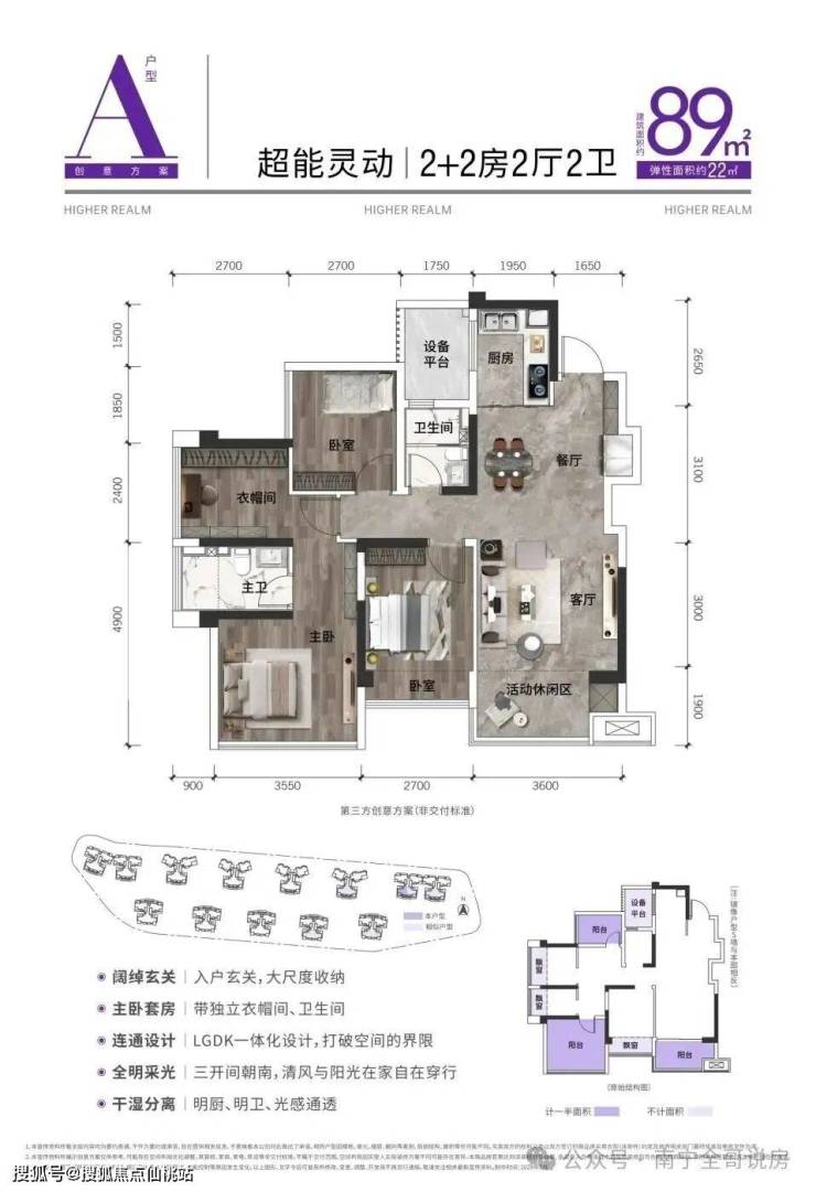 - 89㎡灵动四房:通过S墙设计实现空间灵活改造,可变化为两房至四房,配备独立衣帽间和生活阳台,实用率超100%