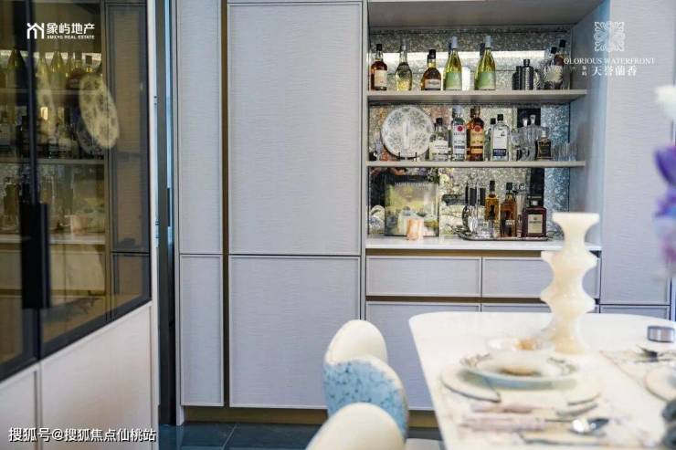 另外,餐厅两侧均预留餐边柜位置,是两个交付的冰箱位置,增加更多的收纳。