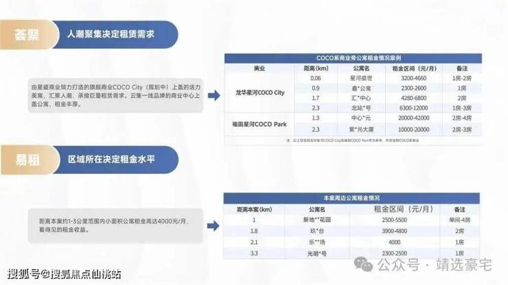 距离本案约1-3公里范围内小面积公寓租金高达4000元/月,看得见的租金收益。