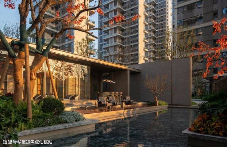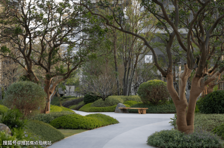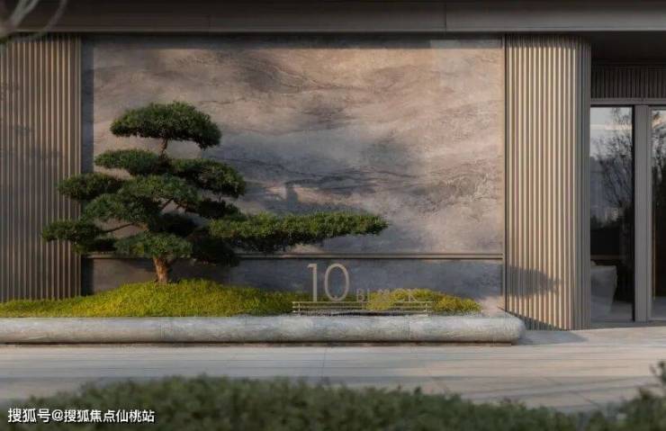 通过错落的植被层次可以看出开发商对园林造景的严苛,对品质的追求,每栋入户大堂门口立着罗汉松+铁冬青,寓意"轻松",希望业主们在这里收获理想、惬意的湖居时光。