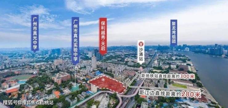 保利越秀天启项目到沙涌地铁站,已经开通的广佛线,直线距离约300米,步行大概450米,就可以1站海珠西。