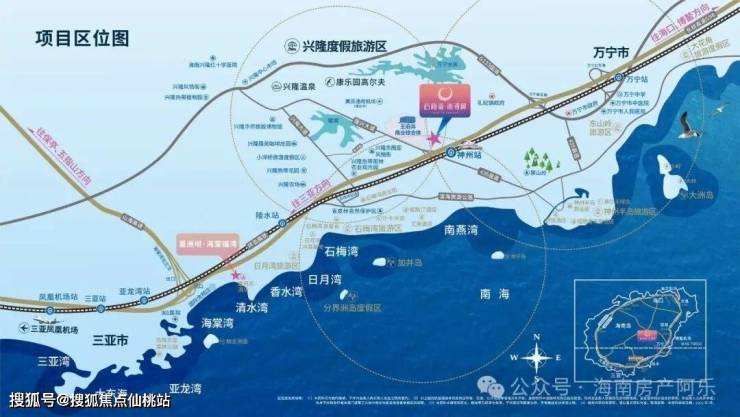 项目位于万宁兴隆温泉旅游度假区、滨海湾区、万宁市区三区交汇处,拥有着与生俱来的优势位置,紧邻交通枢纽,享环岛高速、环岛高铁、三大机场,立体交通网络畅达全岛。