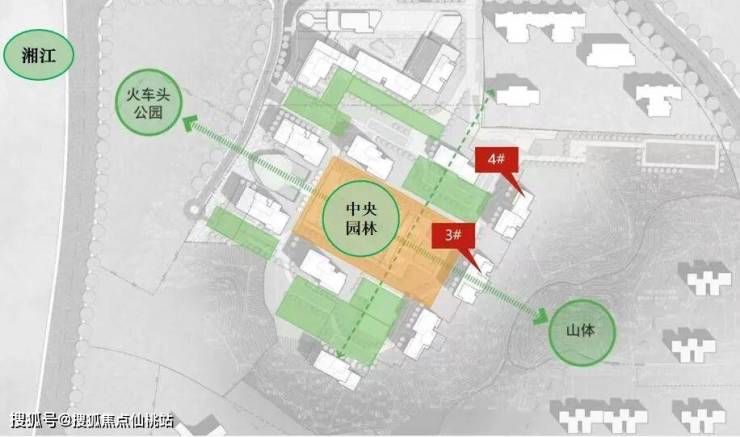 山水环绕:坐落湘江边主城心,一江两园环绕的城市“绿肺”处,出则繁华,入则宁静